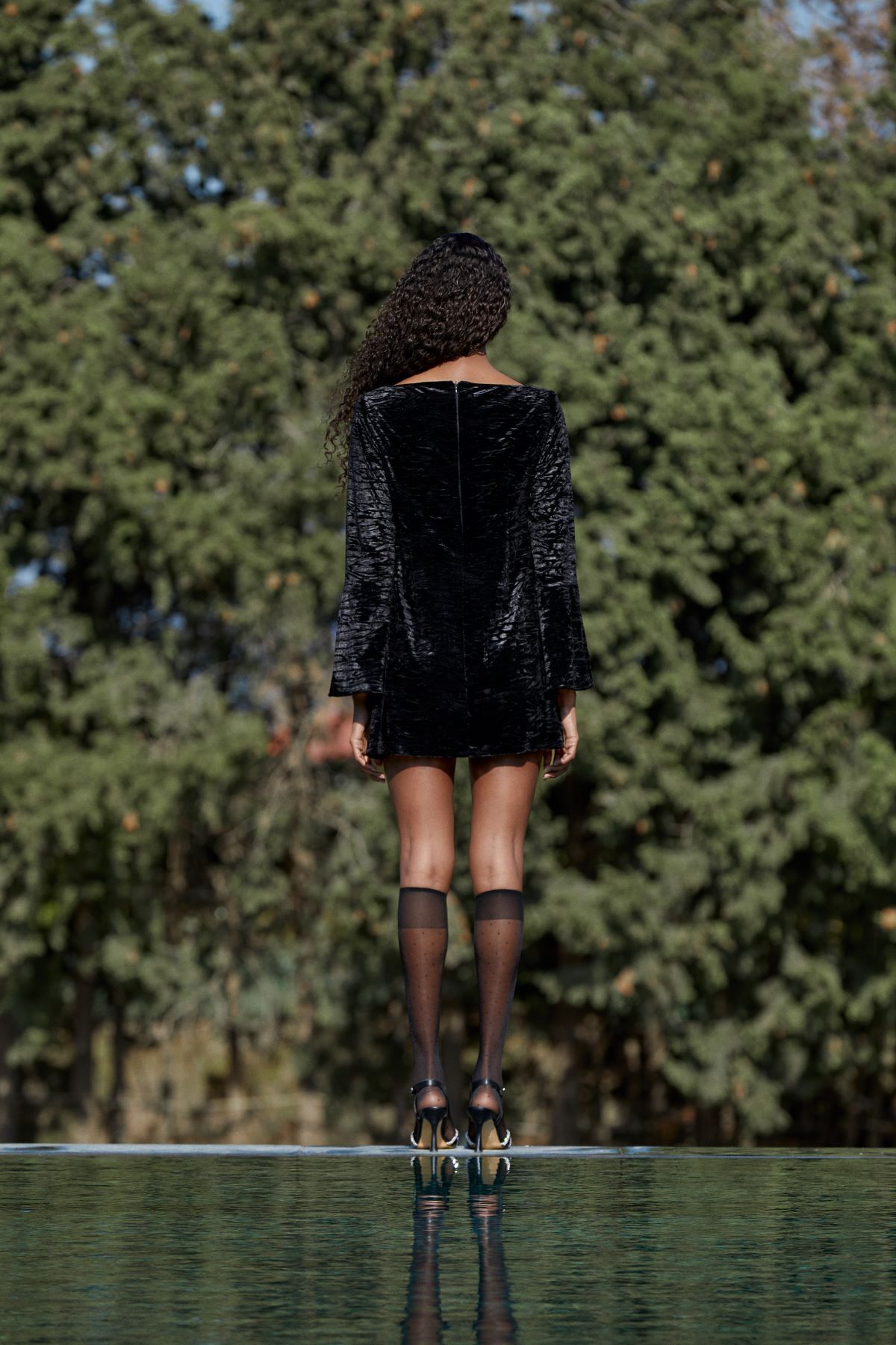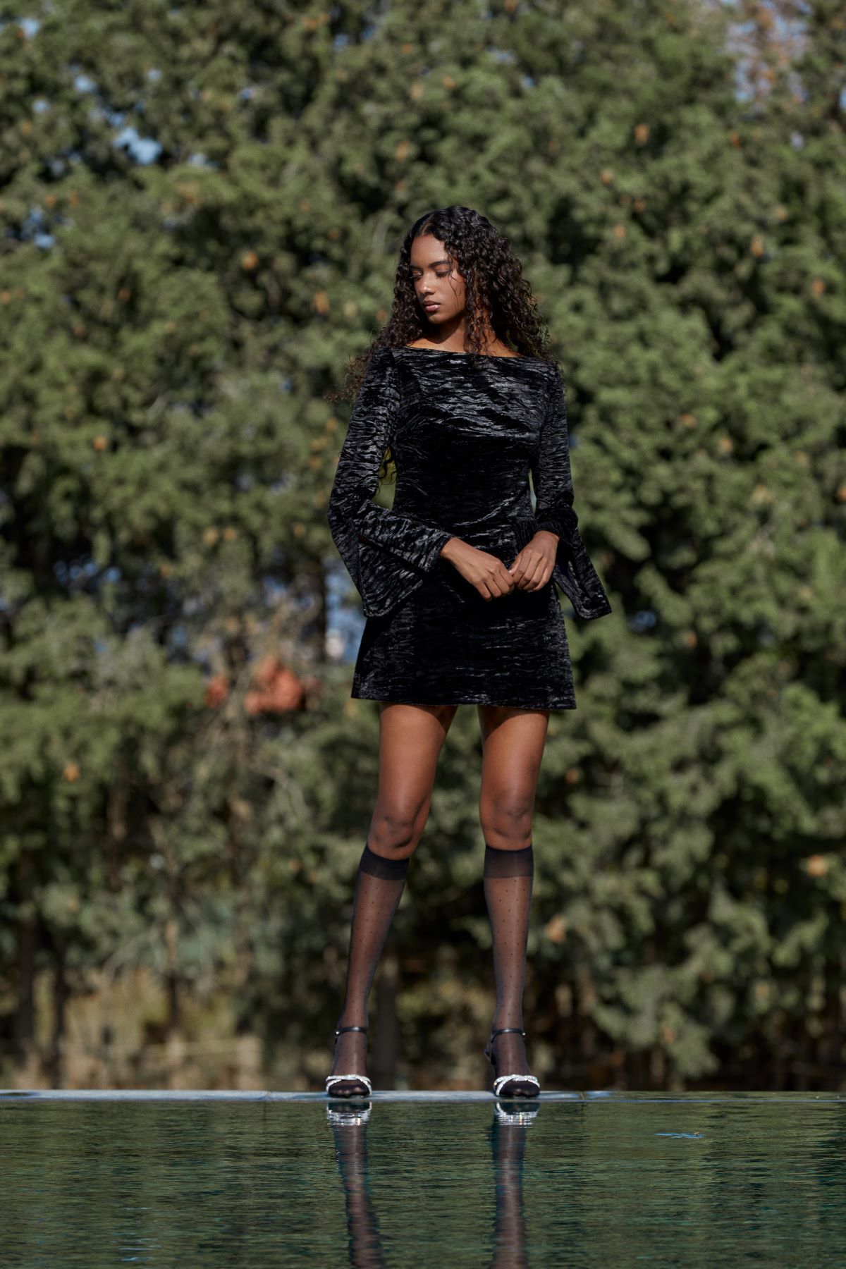 Siyah kadife mini elbise arayanların vazgeçilmezi olacak Black Magic. Hemen sepetinize ekleyin ve yılın en özel gecesine damganızı vurun.
