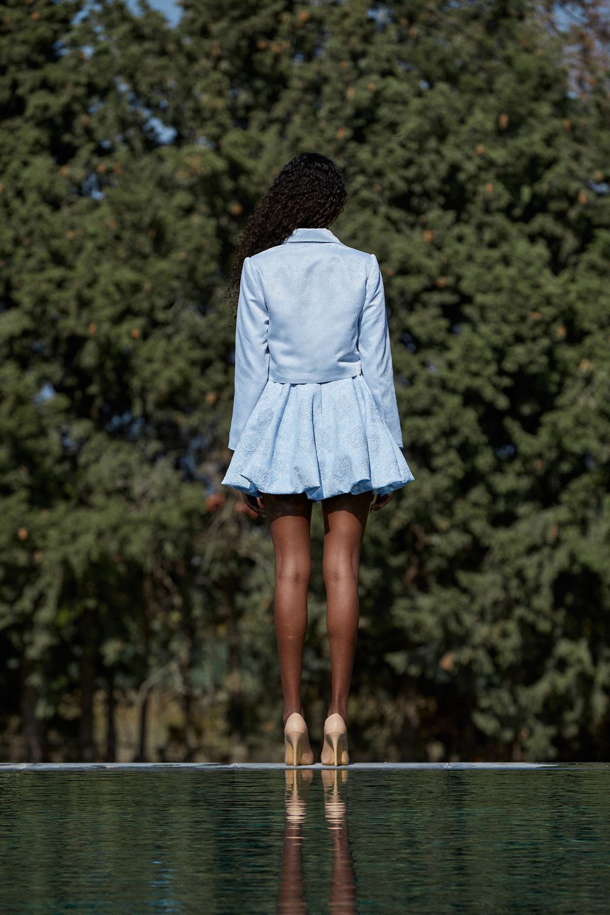 Mavi Renk Brokar Balon Etek Ceket Takım, Balon Etek Ceket Takım, Brokar Balon Etek, Balon Etek, Kısa Ceket