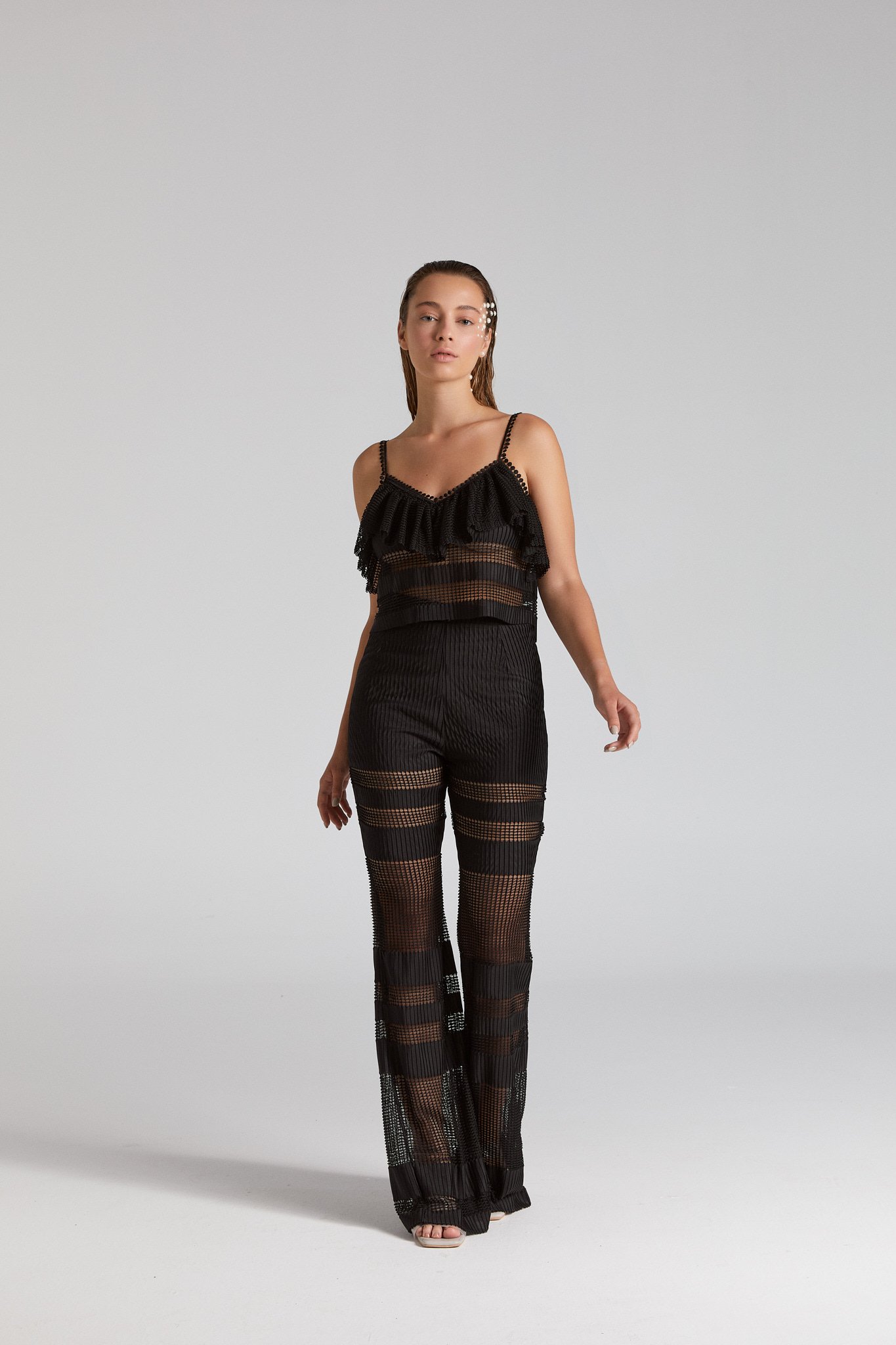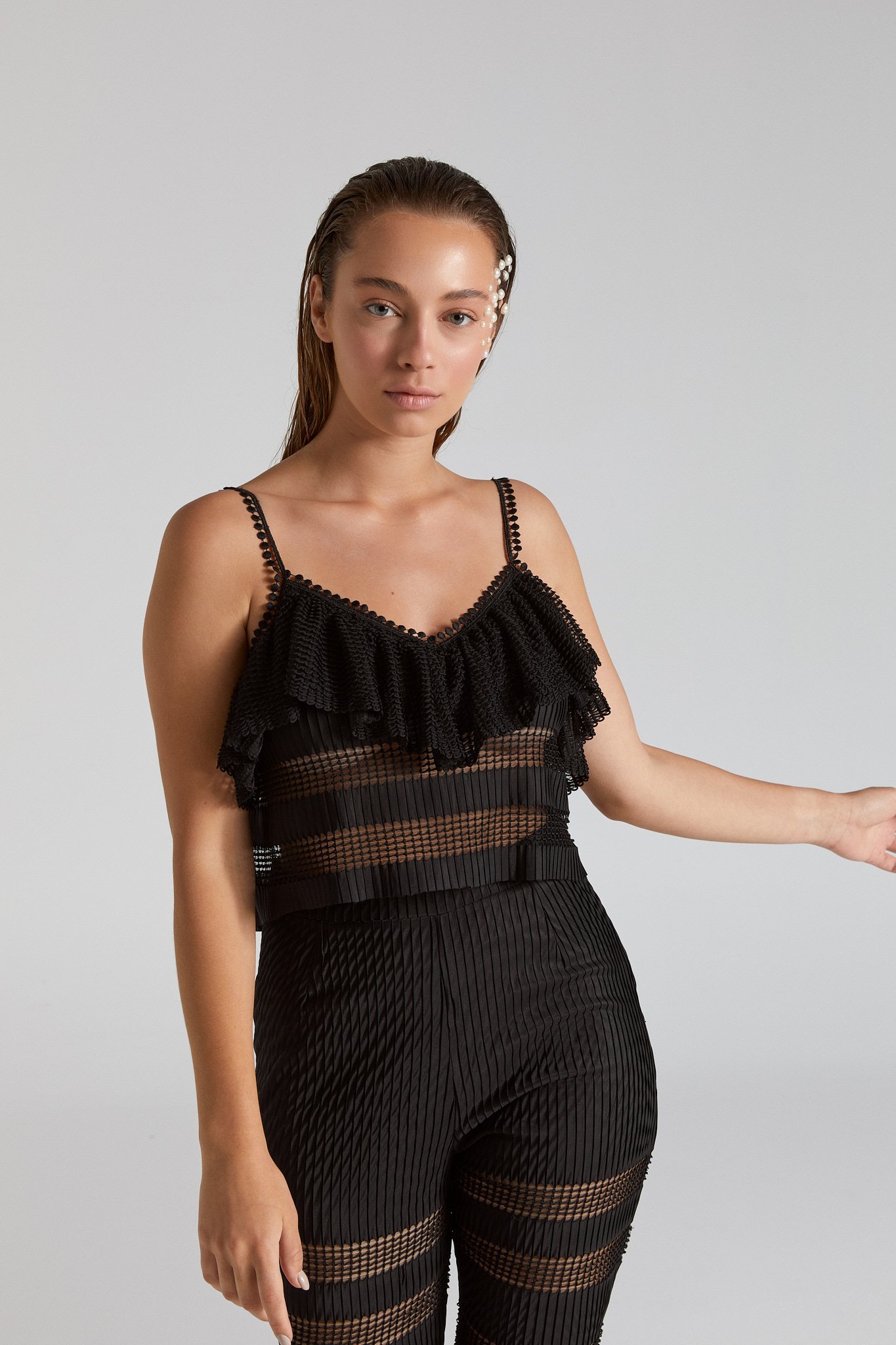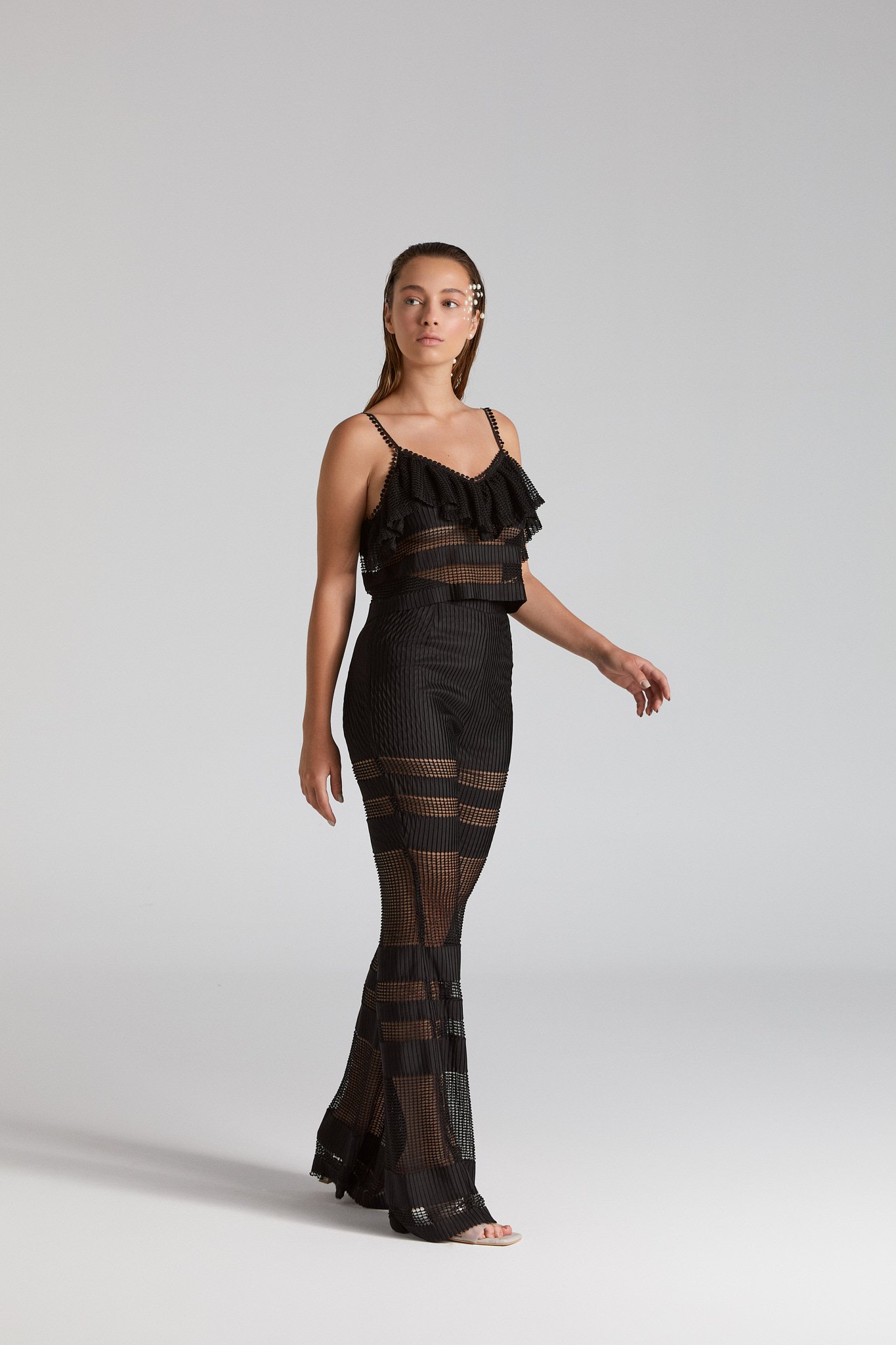 Siyah File Kumaş İspanyol Paça Pantolon Crop TakımFile Kumaş İspanyol Paça Pantolon Crop Takım. Fotoğraflar dış çekim olduğu için renkler ışık farklılığından dolayı değişiklik gösterebilir. Modelin Ölçüleri: Boy: 1.78, Göğüs: 85, Bel: 68, Kalça: 94, Beden: 36.NOSKAYTKM000035