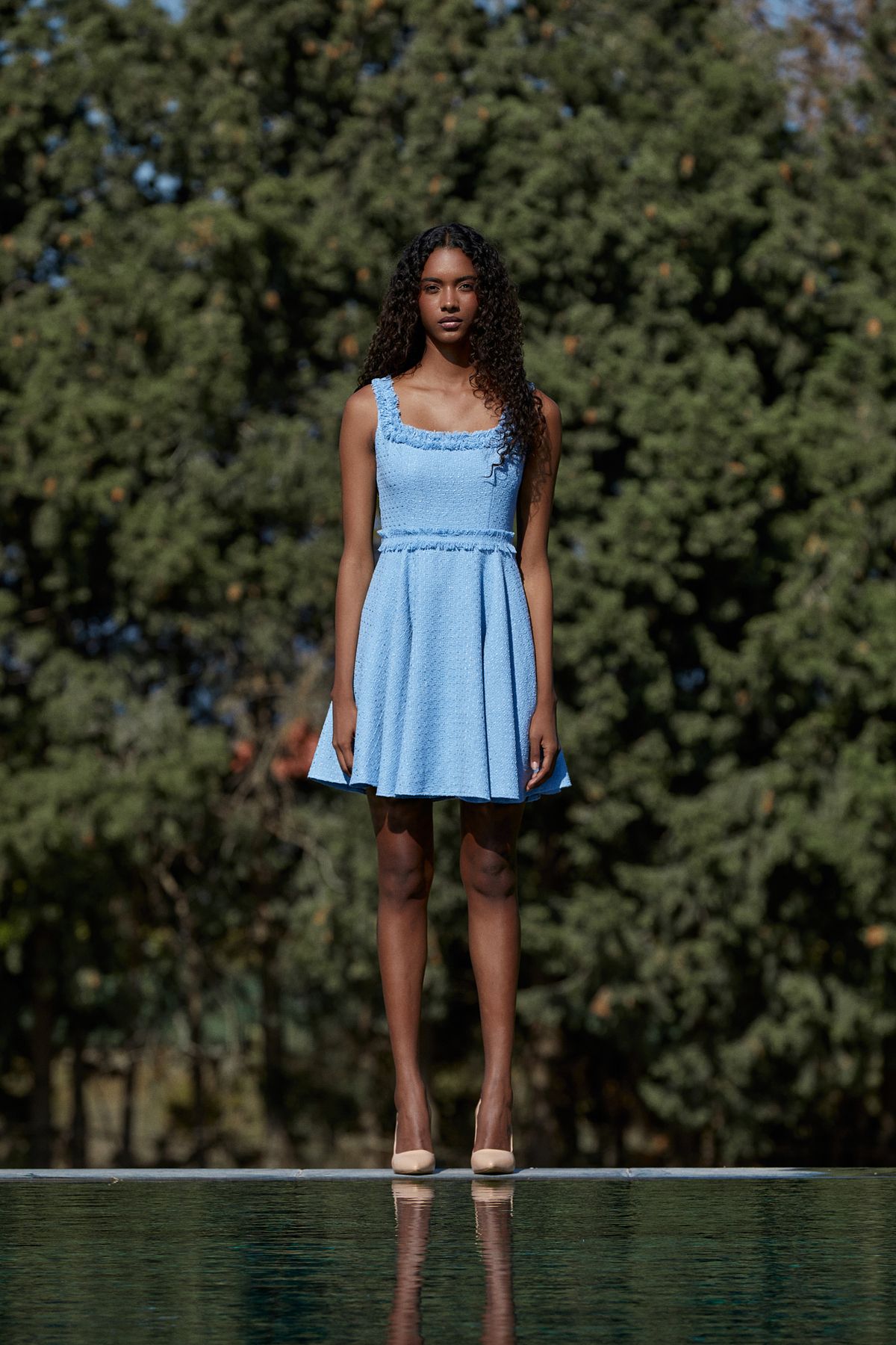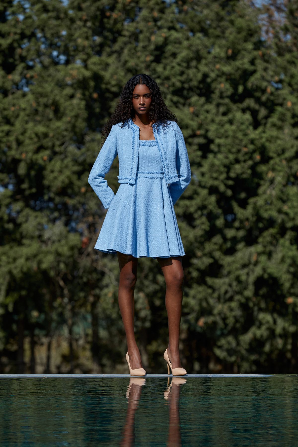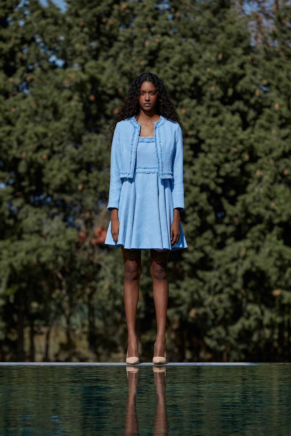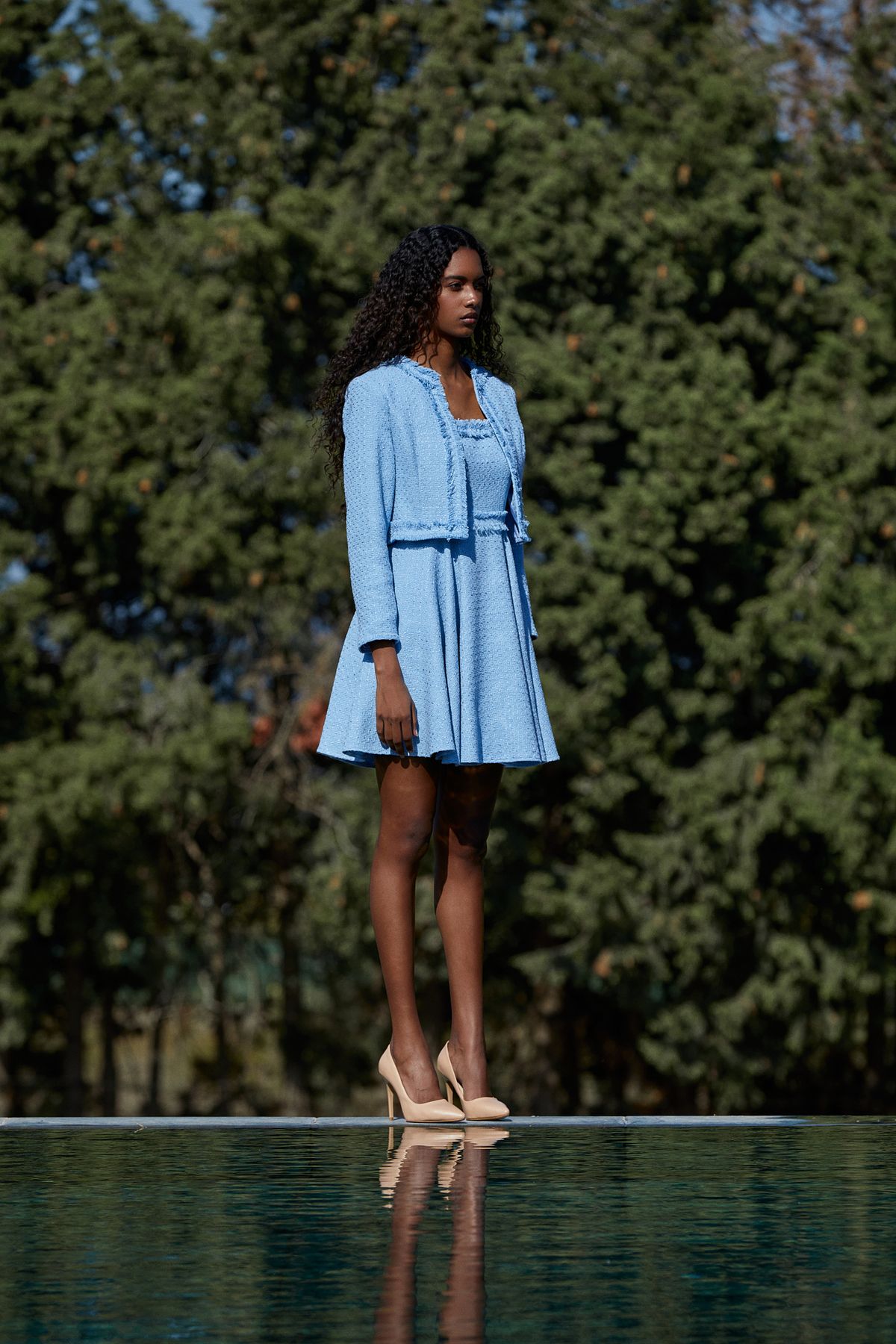 Mavi Tüvit Kloş Elbise Kısa Ceket Takım, Kısa Tüvid Ceket Etek Takım, Kloş Etek, Tüvit Ceket, Kloş Elbise