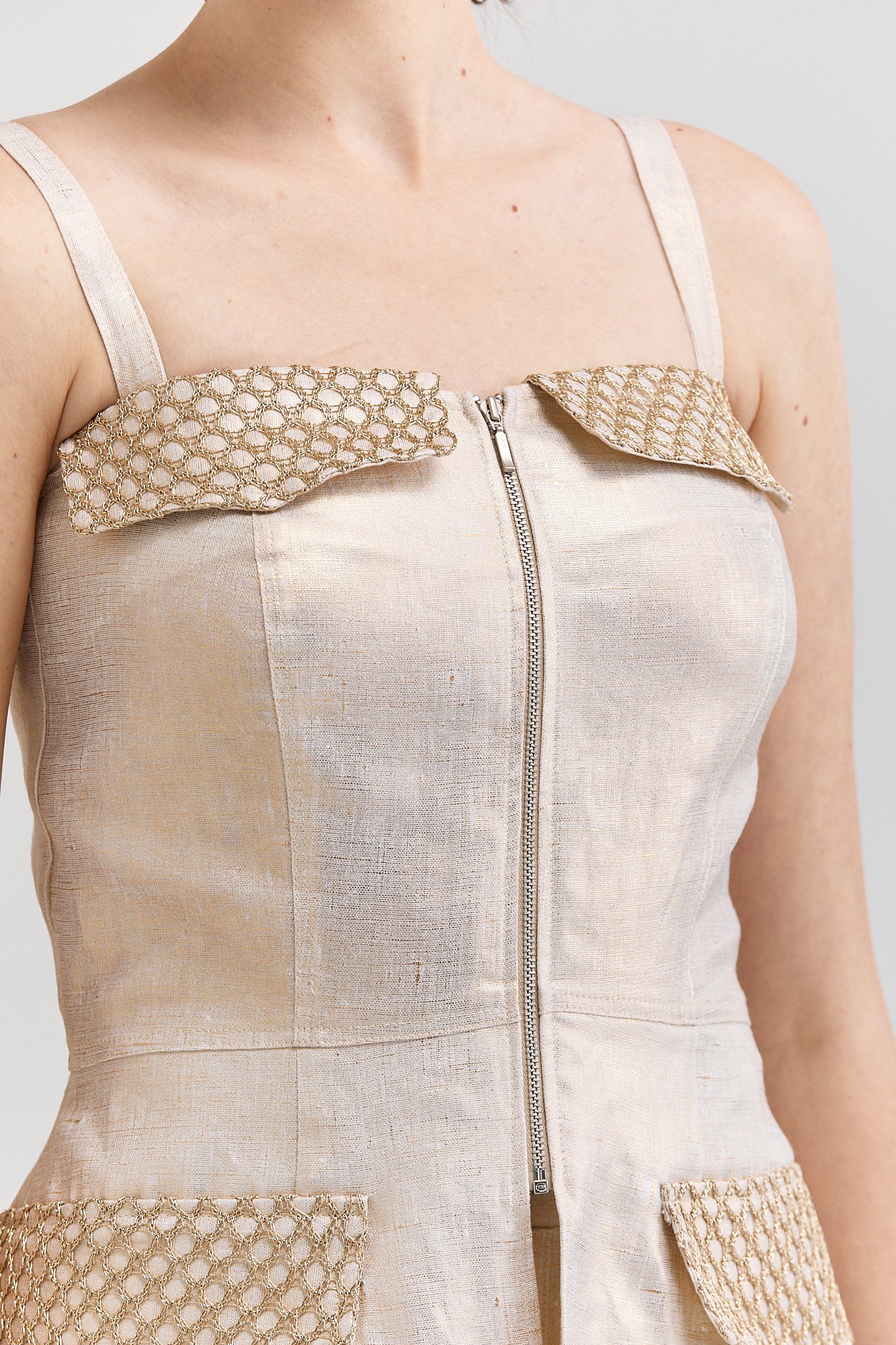Queen, Gold Varaklı Keten Bluz Şort Takım
